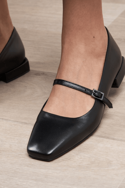 Czarne płaskie buty na niskim obcasie z pojedynczym paskiem i kwadratowym noskiem [Przedsprzedaż]