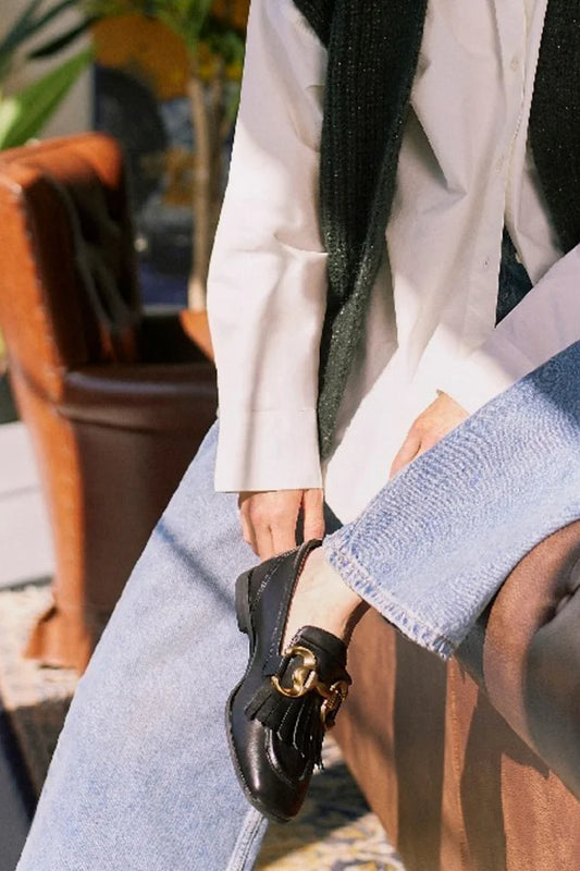 Chwosty Dekoracja Okrągły Nosek Niski Słupek Czarny Mokasyny [Przedsprzedaż]
