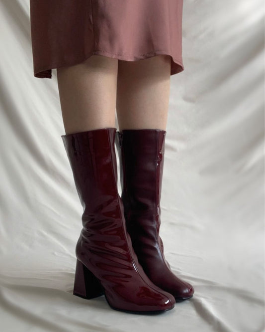Burgundy PU Chunky Block Heel Boots [Pre Order]