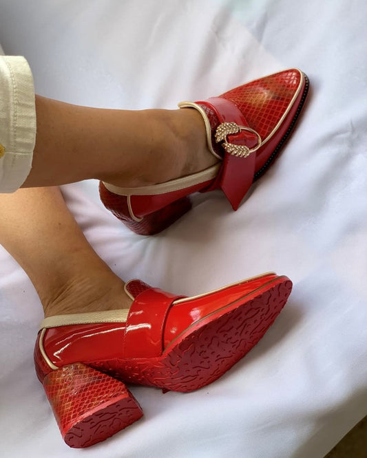 Retro Two-Tone Slingback Square Toe Block Heels [Pre Order]