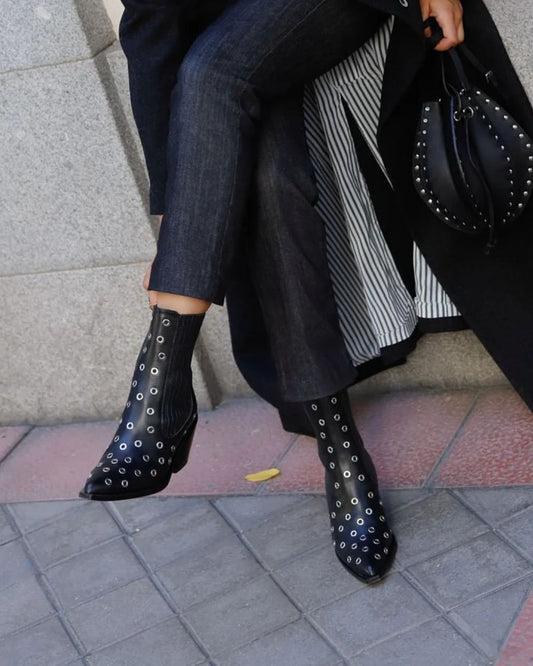 Black Studded Pointed Toe Ankle Boots [Pre Order]