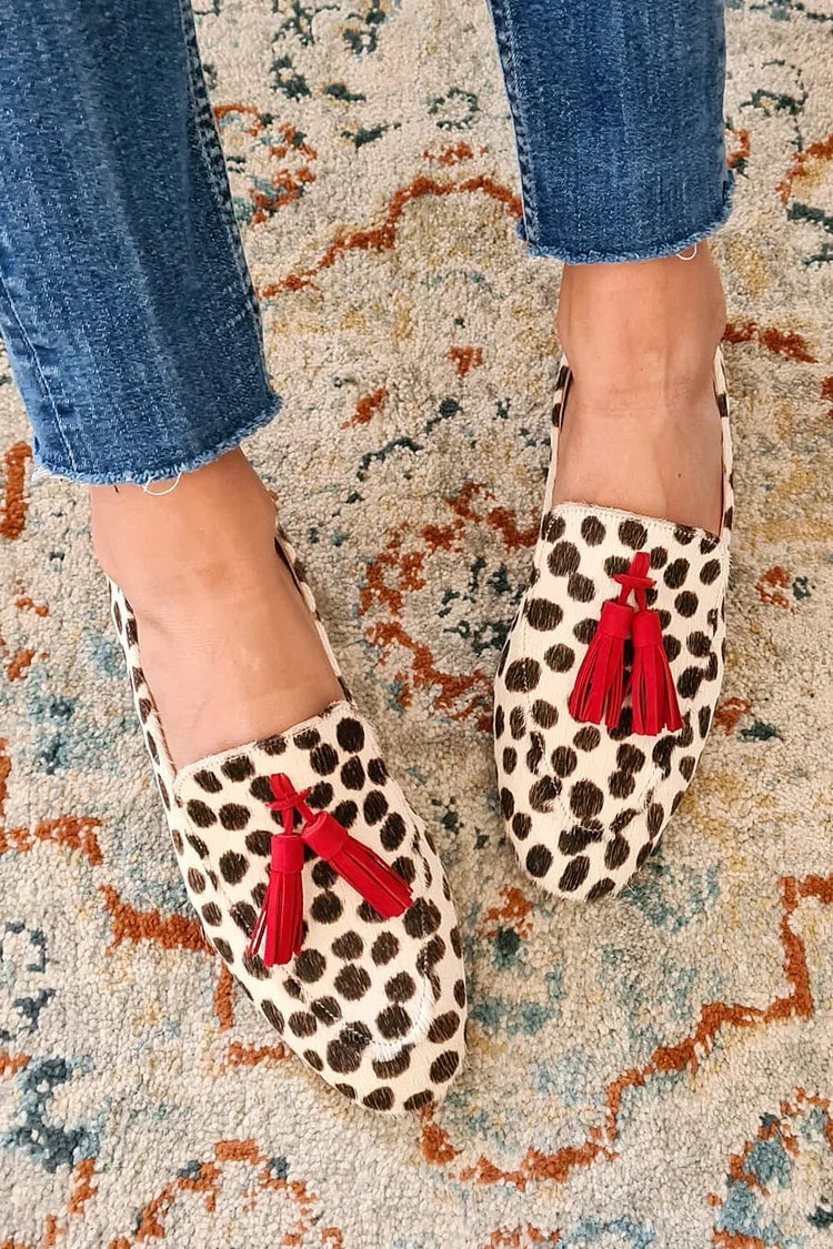 Ozdobne chwosty Mokasyny w panterkę z okrągłym noskiem beżowe [Przedsprzedaż]
