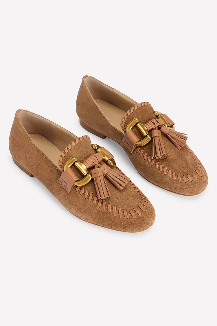 Cholewki z chwostami, ozdobą w kształcie sprzączki Horsebit, przeszycia, brązowe mokasyny [Przedsprzedaż]