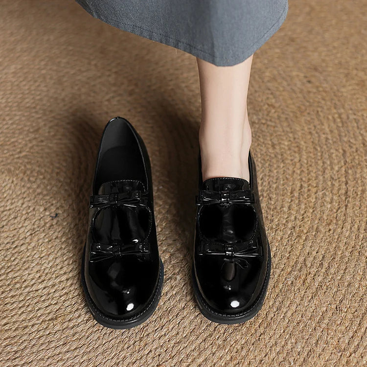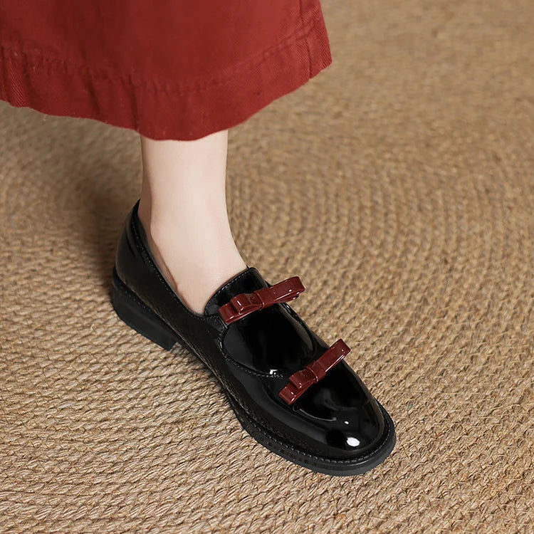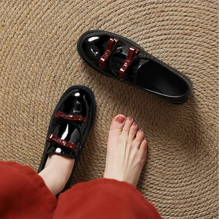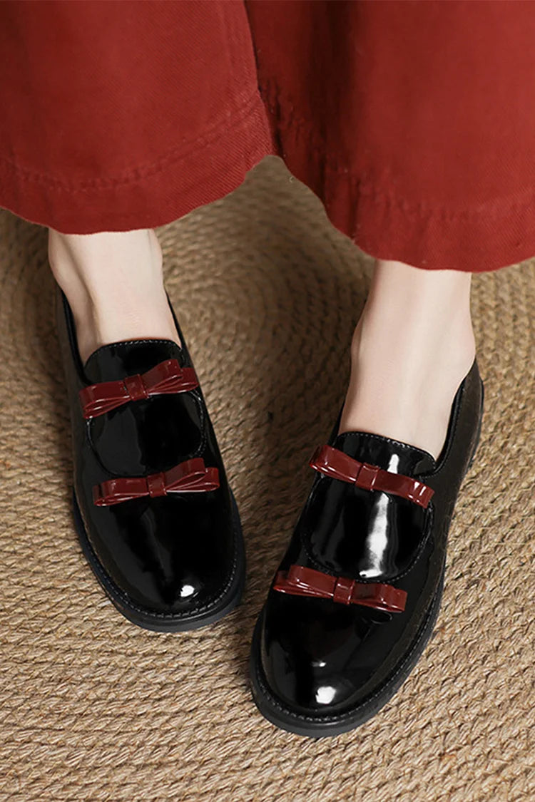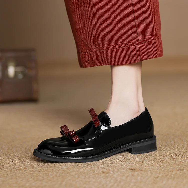 Kolorowe mokasyny casual z kokardą, łączone, okrągły nosek