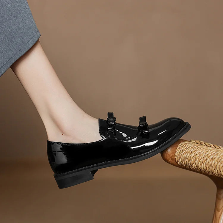 Aksamitne baleriny z kwadratową klamrą i miękkim kwadratowym noskiem