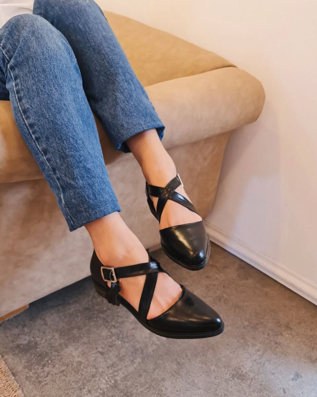 Aksamitne baleriny z kwadratową klamrą i miękkim kwadratowym noskiem
