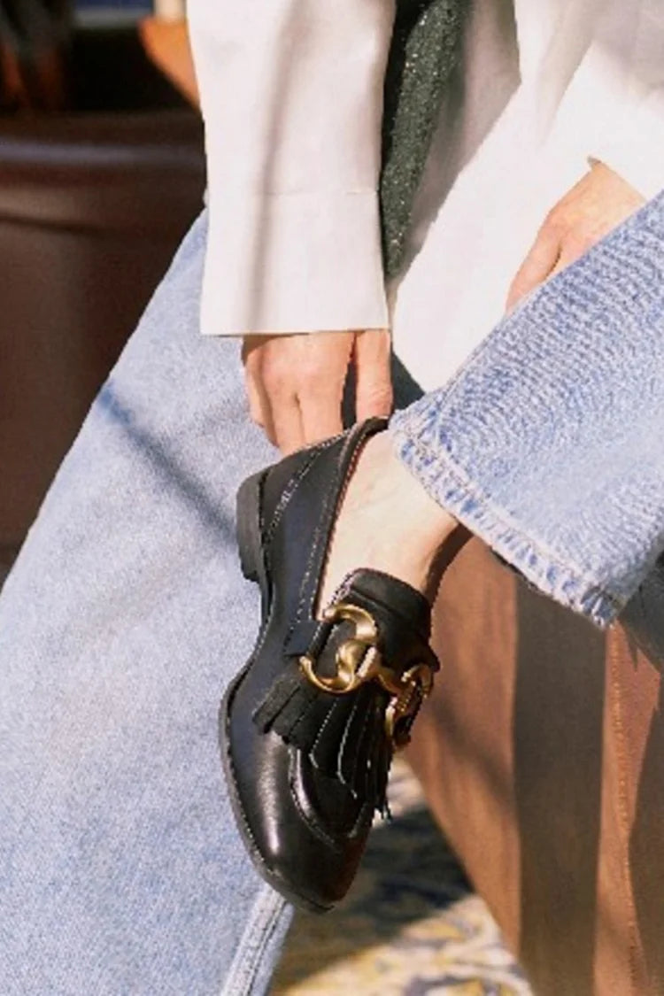 Czarny metalowy dekoracyjny mokasyn z kwadratowym noskiem [Przedsprzedaż]