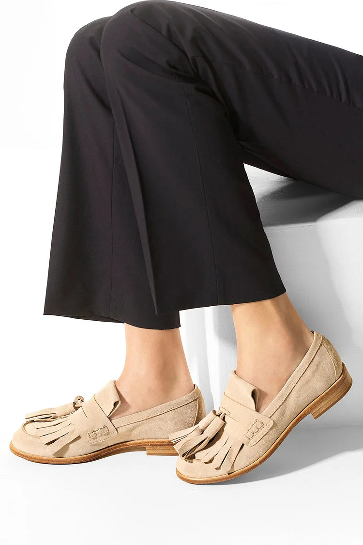 Beżowe mokasyny z okrągłym noskiem i dekoracyjnymi chwostami w jednolitym kolorze [Przedsprzedaż]