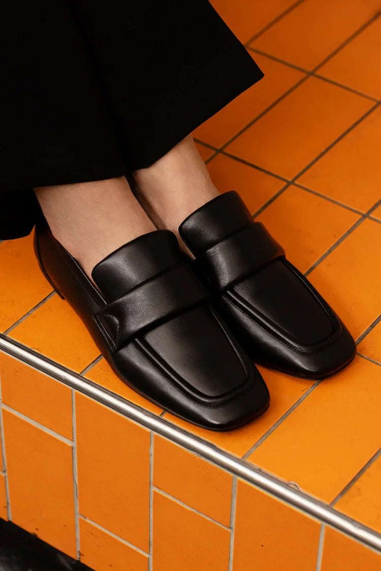 Czarne mokasyny z kwadratowym noskiem w jednolitym kolorze i patchworku [Przedsprzedaż]