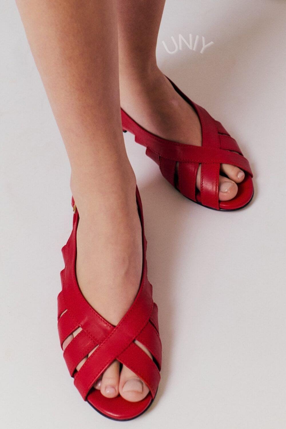 Krzyżowe wycięcia sztuczne skórzane baleriny z odkrytymi palcami [Przedsprzedaż]