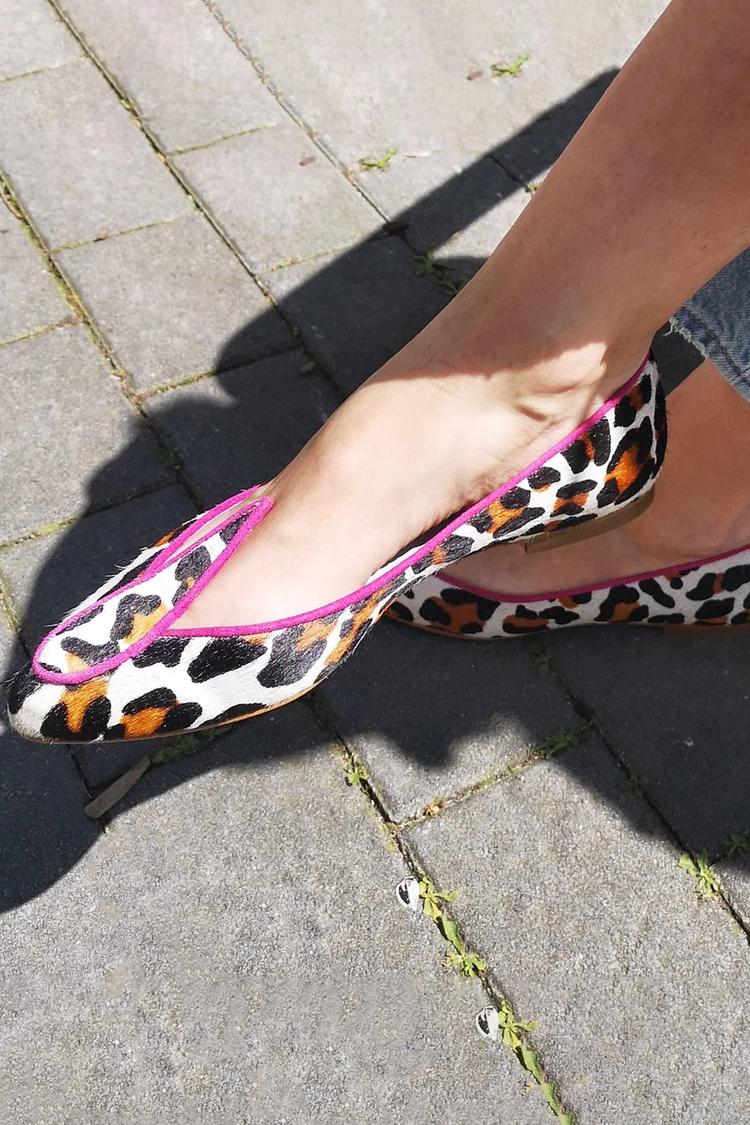 Białe baleriny w szpic z łatami w wzór lamparta [Przedsprzedaż]