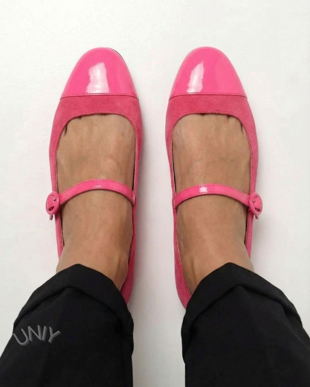 Magenta kolorowe baleriny na płaskim obcasie z okrągłym noskiem i paskiem wokół kostki [Przedsprzedaż]
