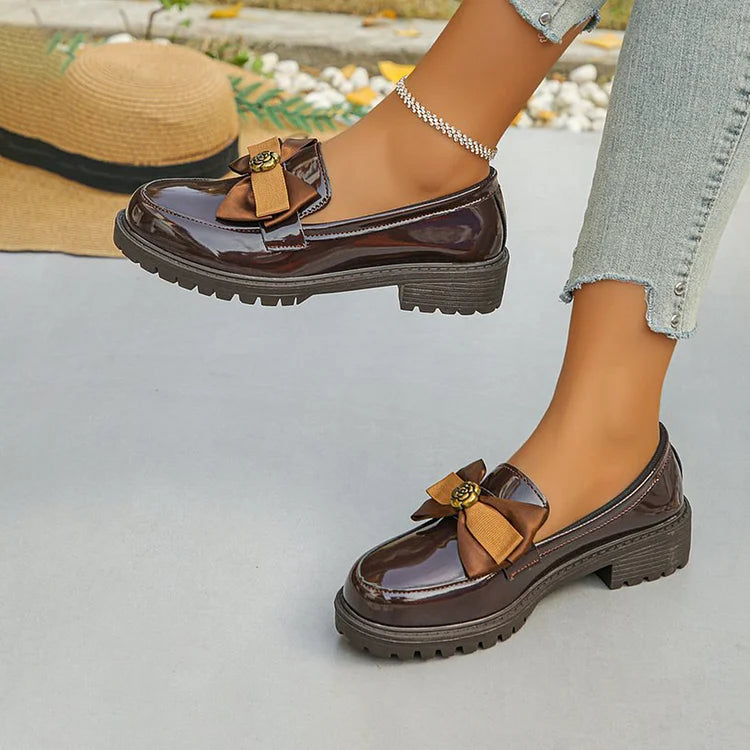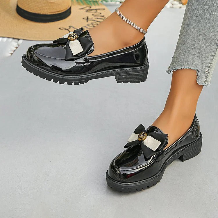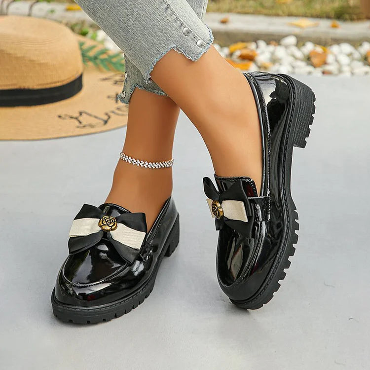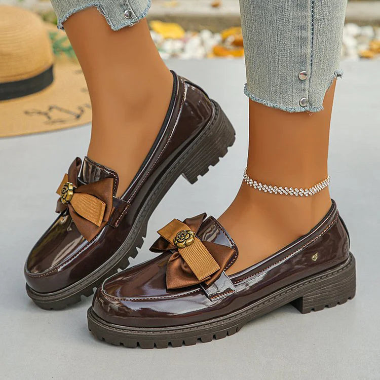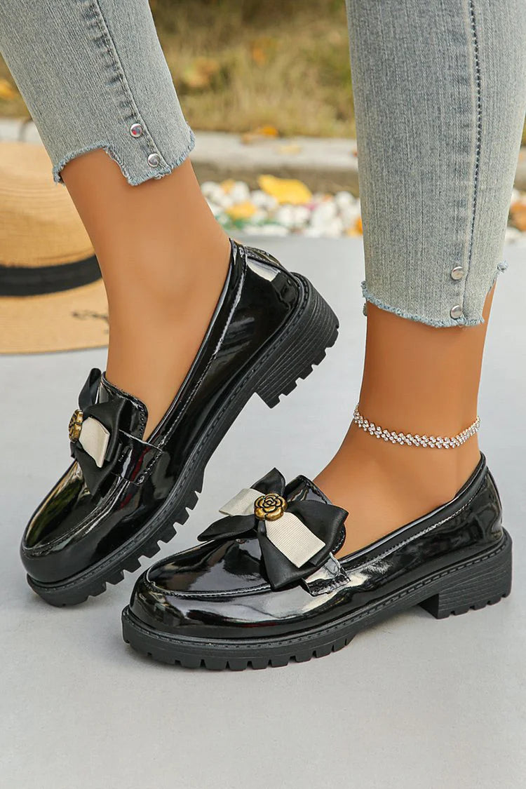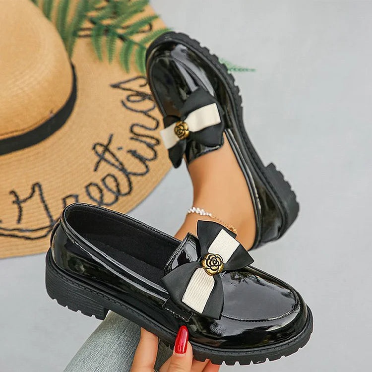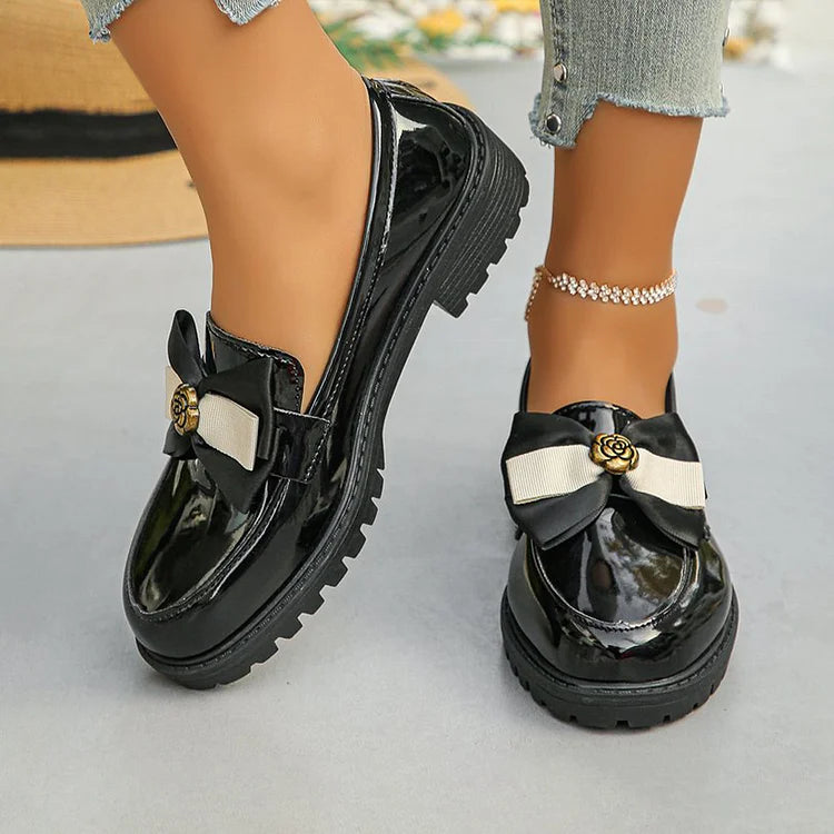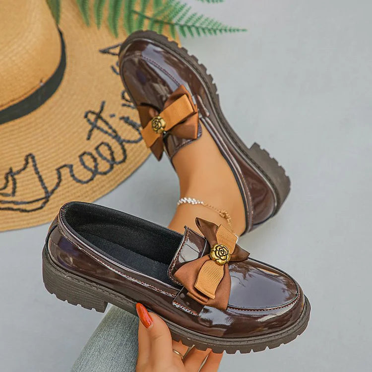 Metalowe kwiatowe mokasyny z kokardą, kolorowe, okrągły nosek, casualowe