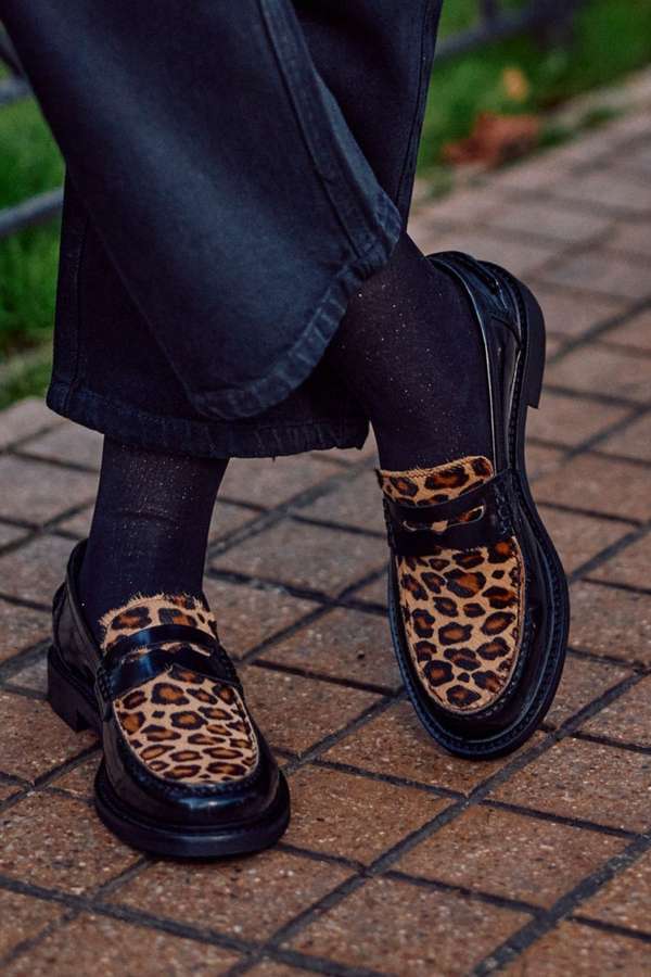 Mokasyny z okrągłym noskiem z prawdziwej skóry w panterkę [Przedsprzedaż]