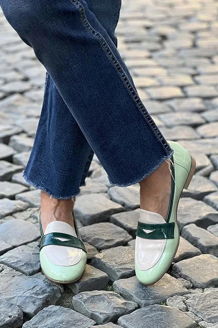 Mokasyny wsuwane z okrągłym noskiem i łatami w jasnym zielonym kolorze [Przedsprzedaż]
