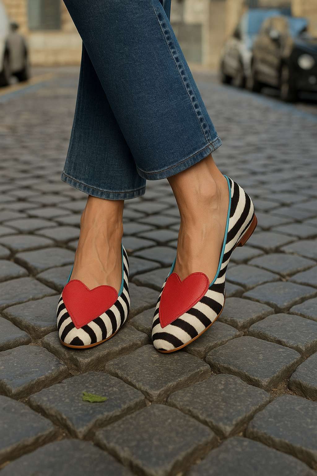 Stylowe casualowe baleriny w czerwone serce z nadrukiem zebry i szpiczastym noskiem [Przedsprzedaż]