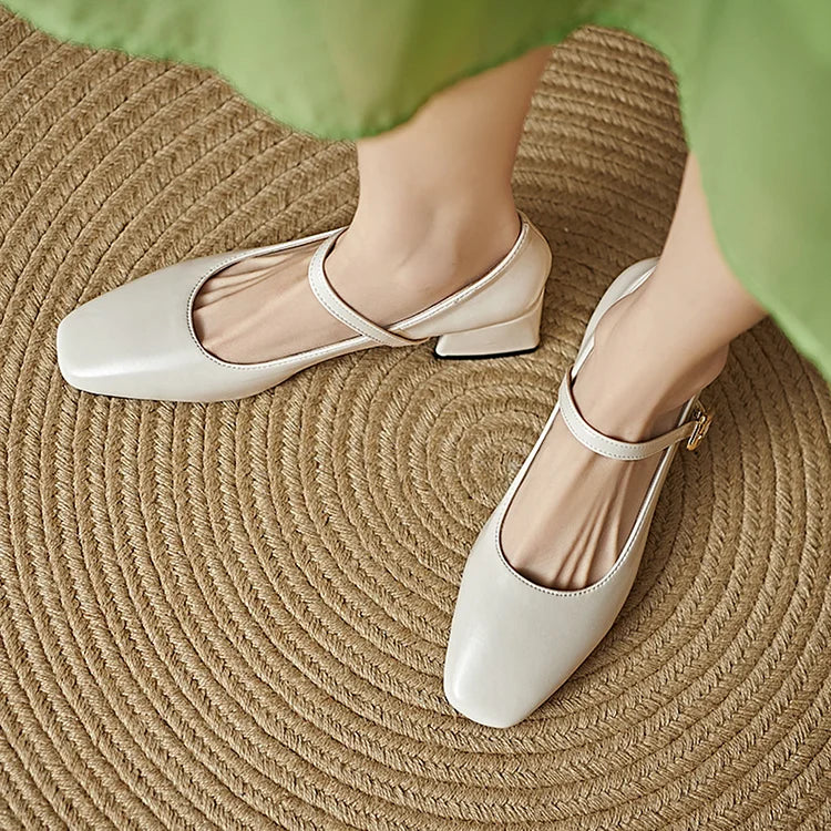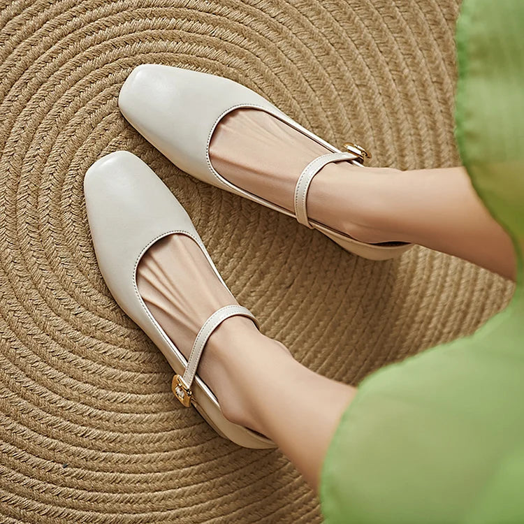 Instep Strap Buckle Metallic Sheen Square Toe Chunky Heels