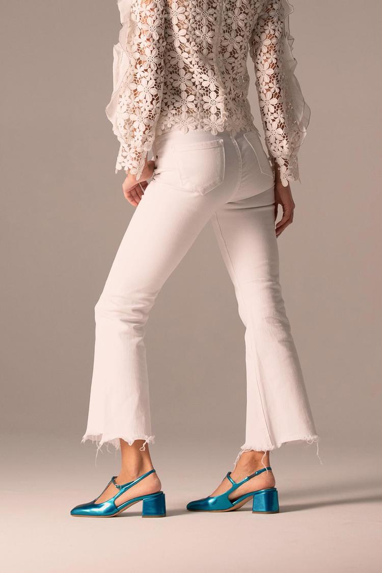 T-Strap Buckle Square Toe Slingback Blue Chunky Heels [Pre Order]