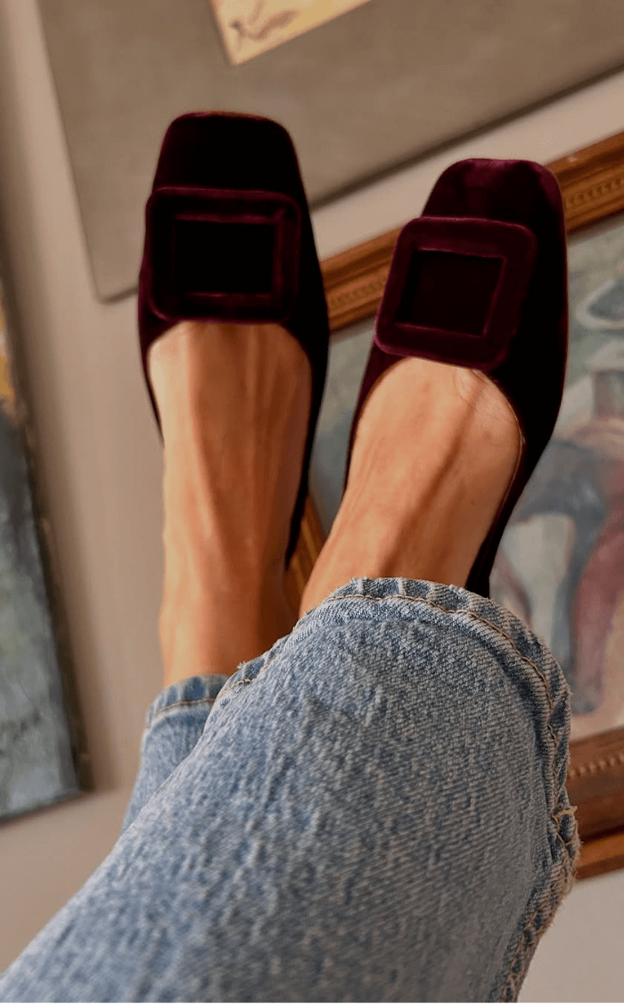 Ballerine con punta quadrata morbida e fibbia quadrata in velluto