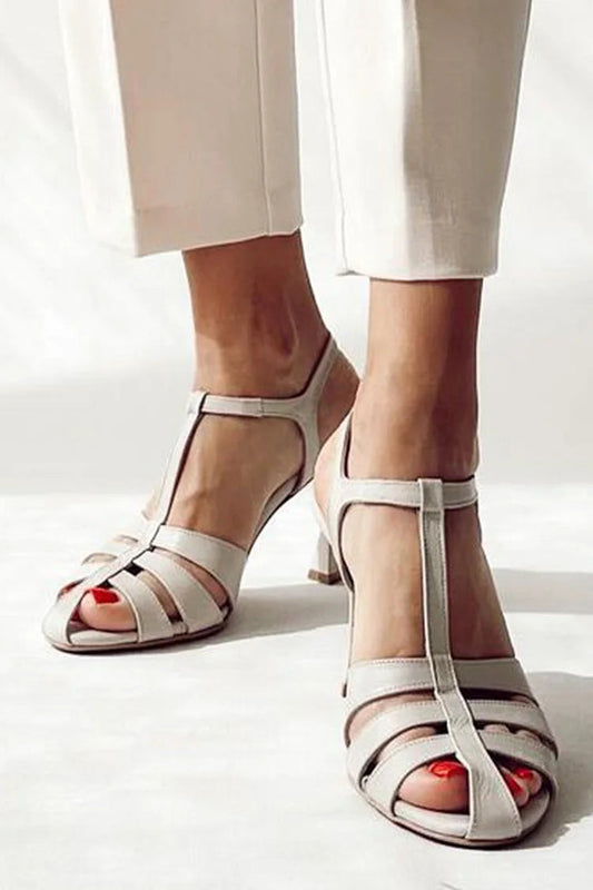 Confortáveis Salto Grosso com Fivela na Tira ao Tornozelo, Biqueira Quadrada e Vazado