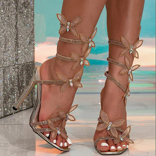Strass 3D borboleta decoração dedo do pé quadrado amarrar salto alto estilete