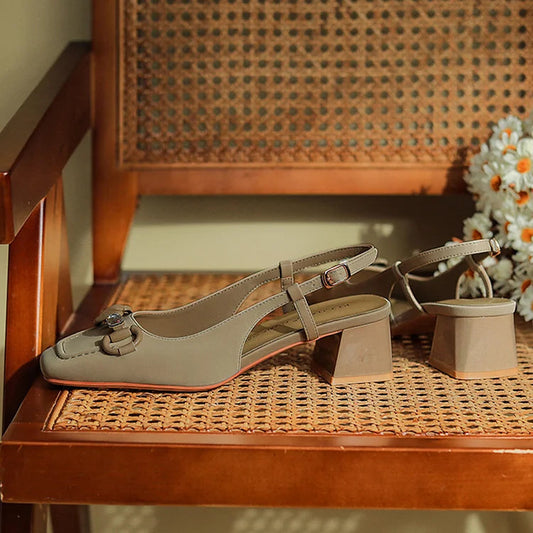Salto Grosso com Tira Atrás, Biqueira Quadrada, Bloco de Cores Elegante e Respirável