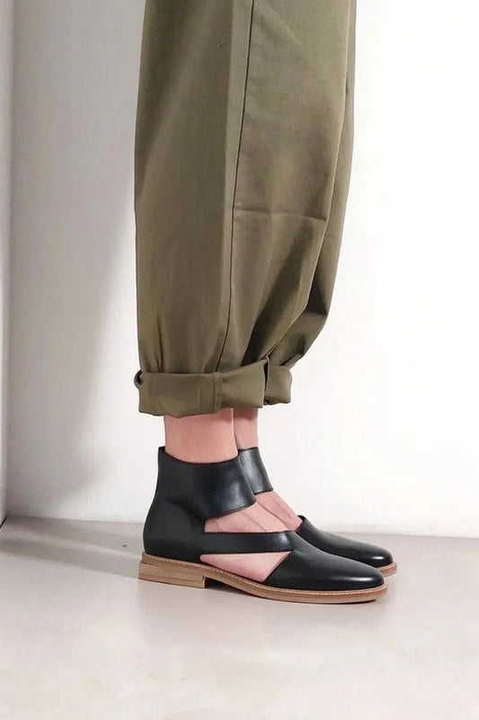 Sapatilhas pretas lisas com recorte irregular e bico redondo