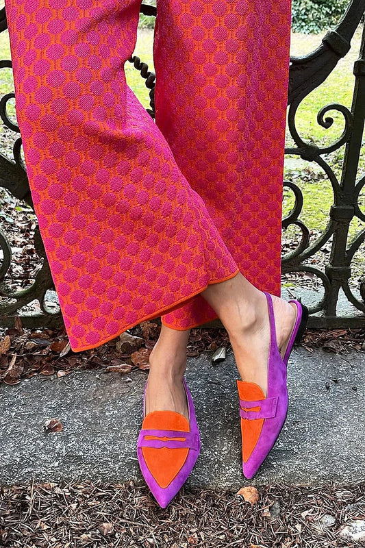Patchwork Colorblock Biqueira Apontada Slingback Roxo Flats