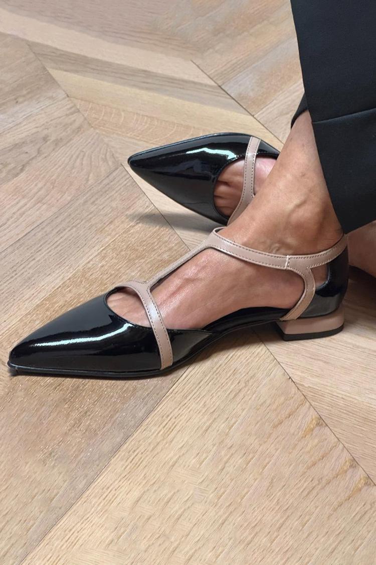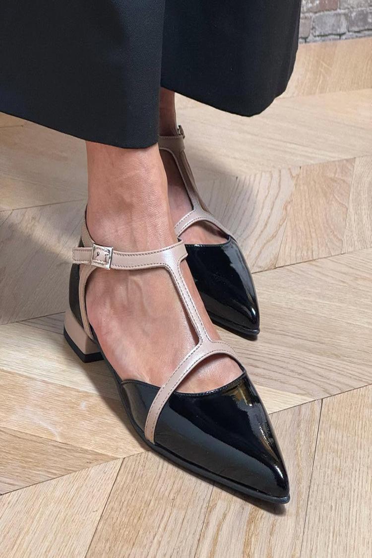 Sabrinas Pretas com Fivela, Biqueira Apontada e Tira em Bloco de Cor [Pré-Encomenda]