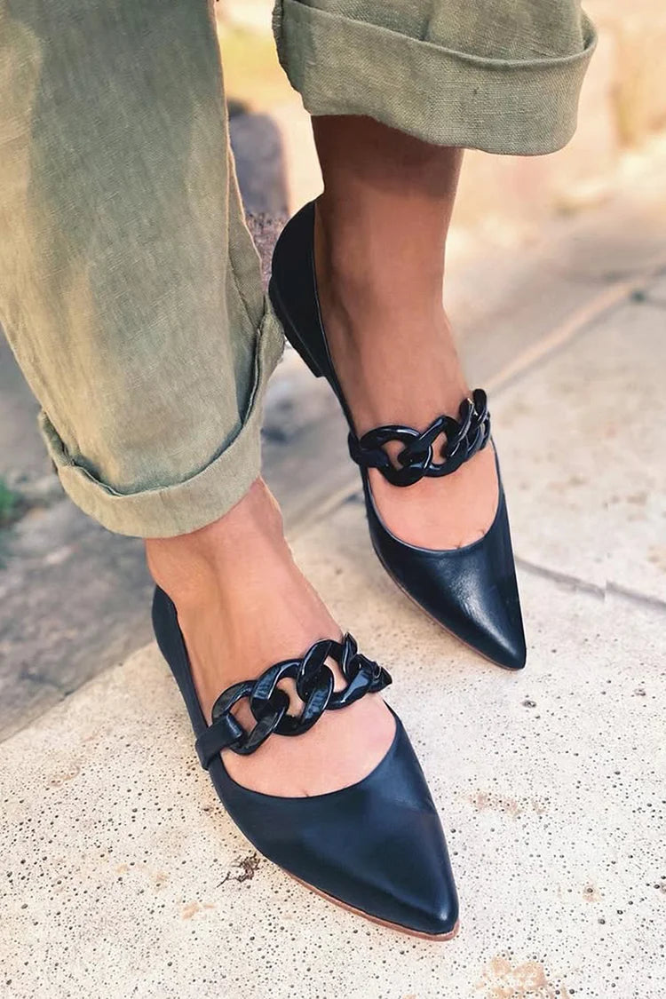 Corrente de Metal Decoração Cor Sólida Sapatilhas Pretas Bico Apontado [Pré-Encomenda]