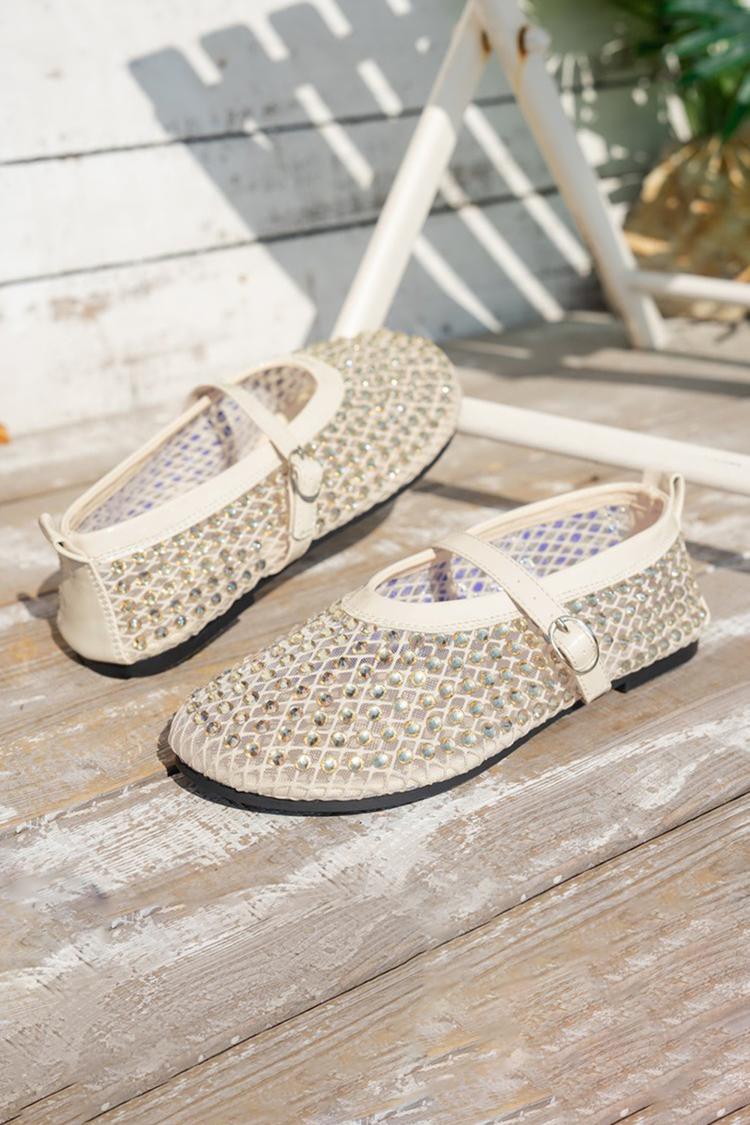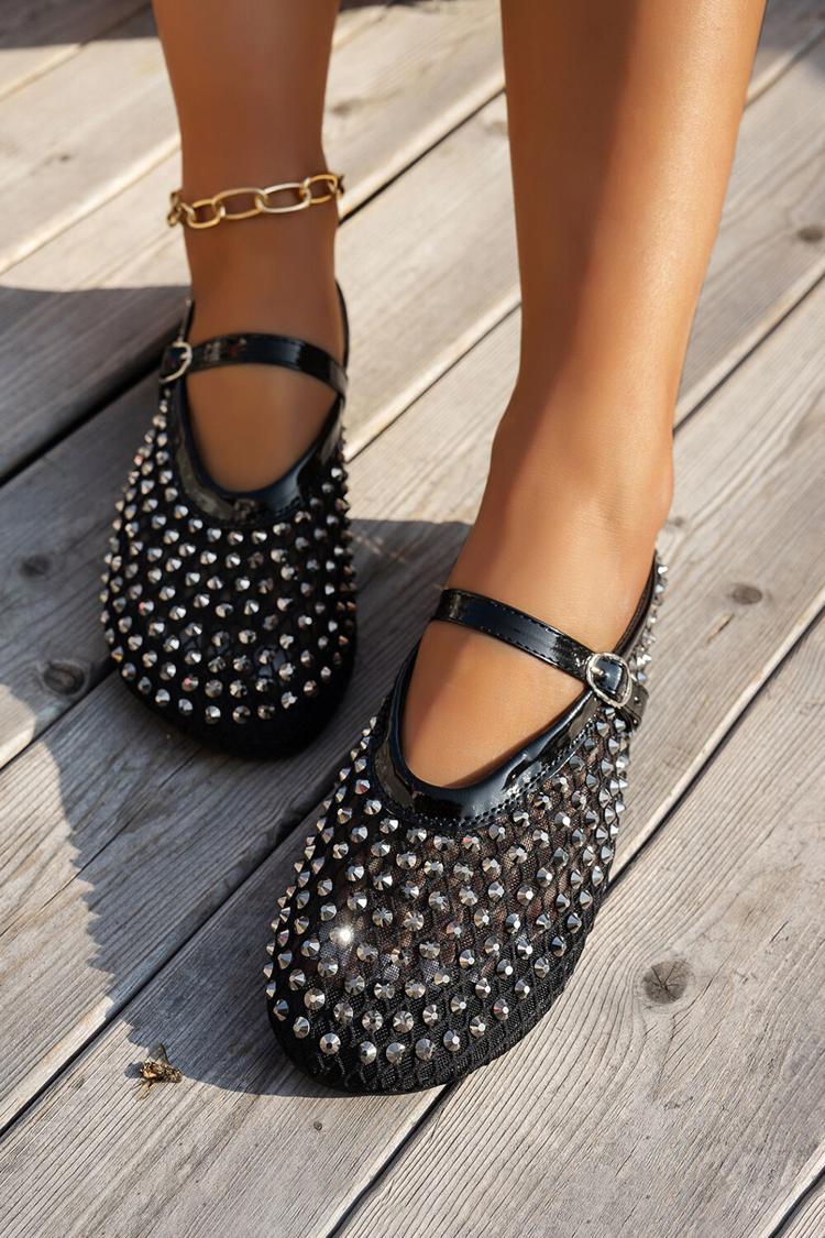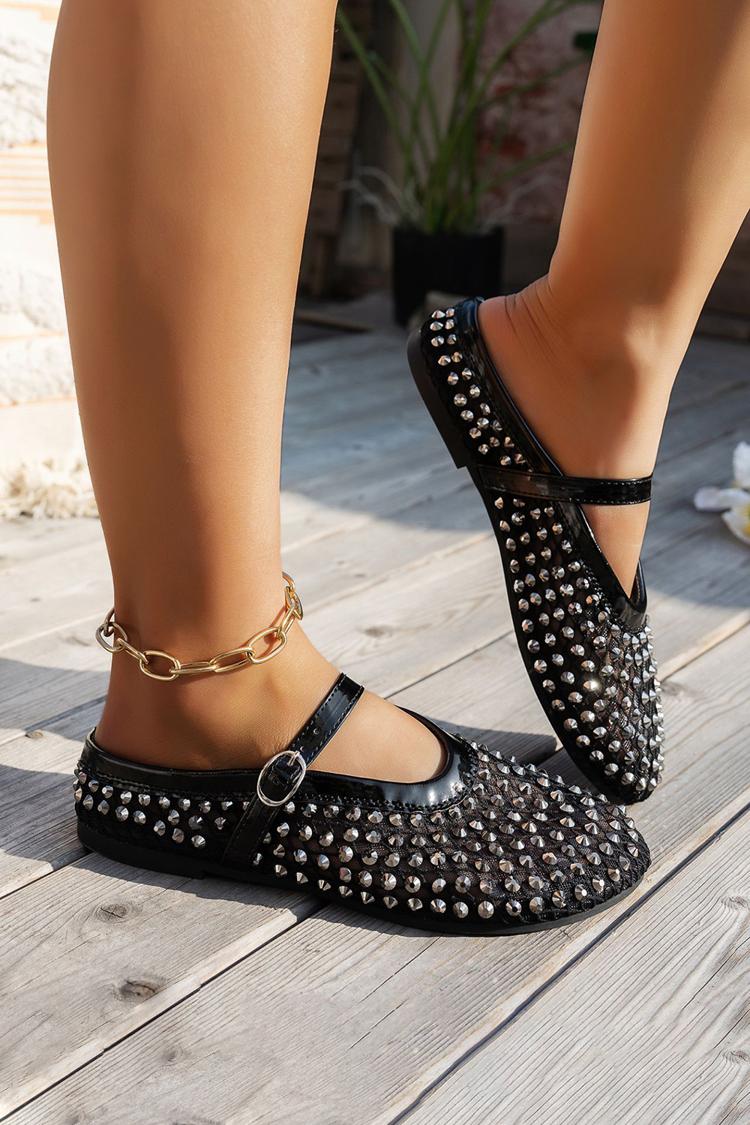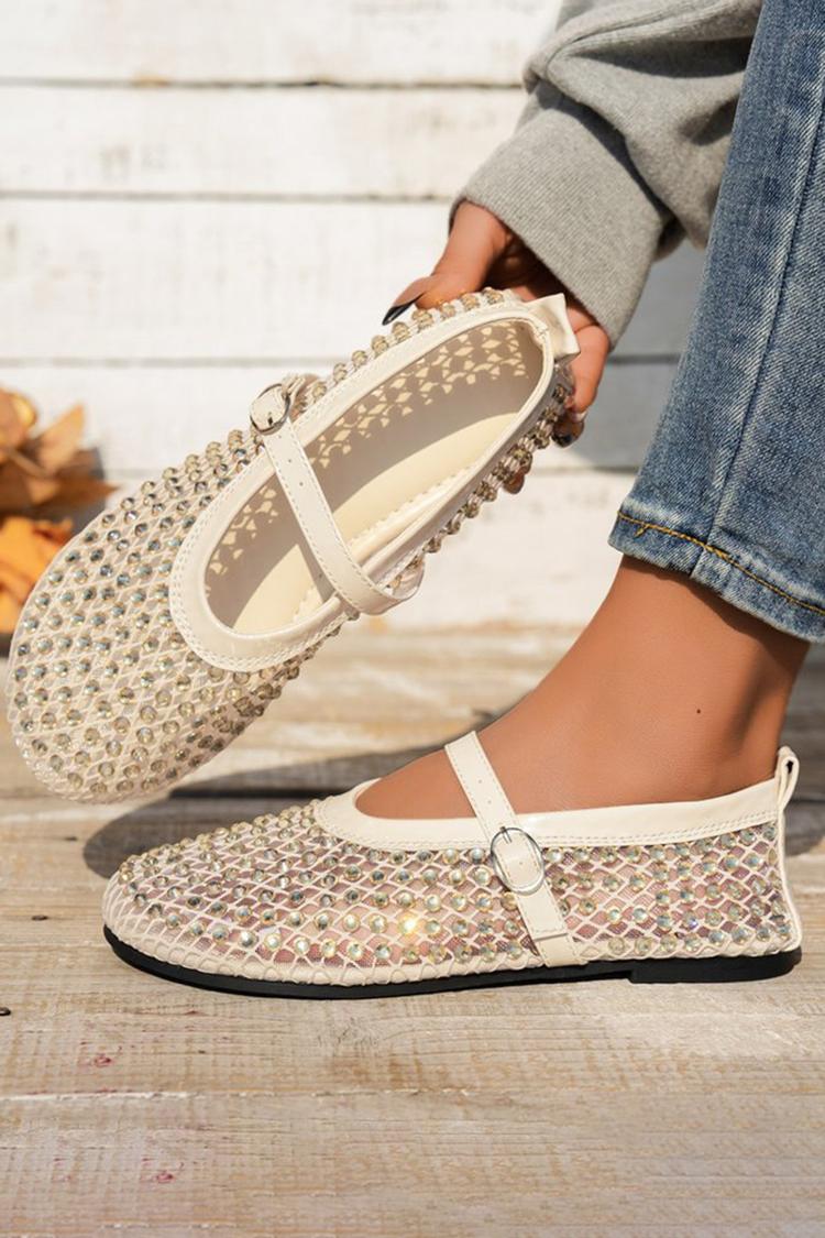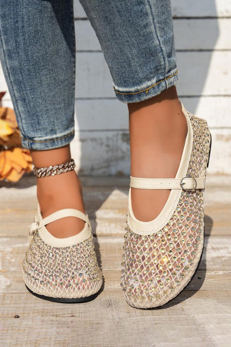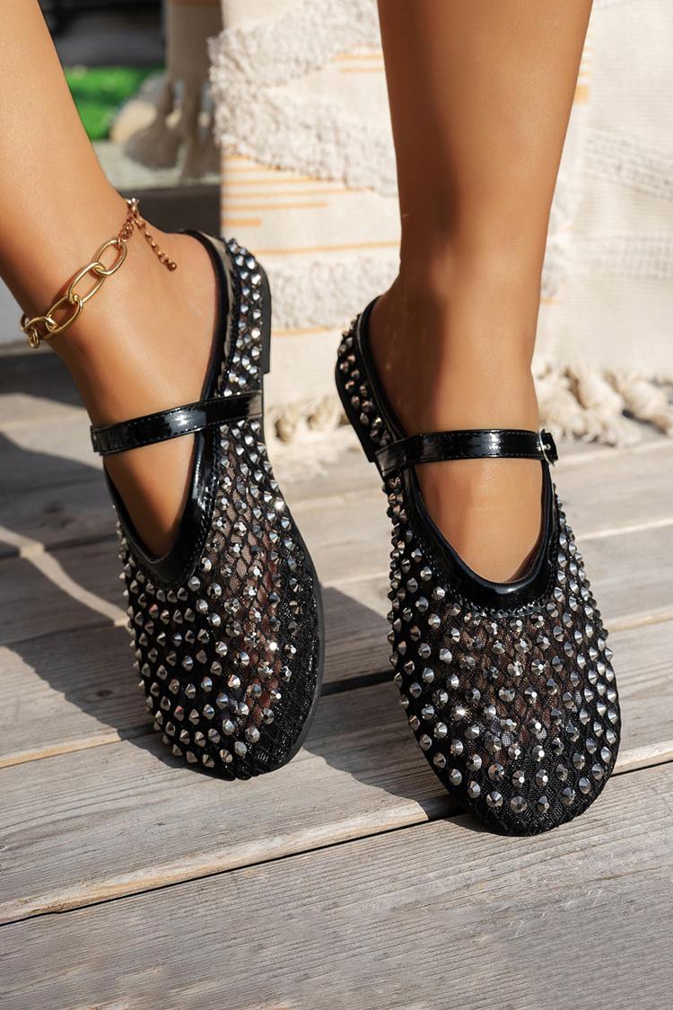 Fivela de Correia no Peito do Pé para Decoração de Perfuração a Quente Sapatilhas de Malha com Biqueira Redonda
