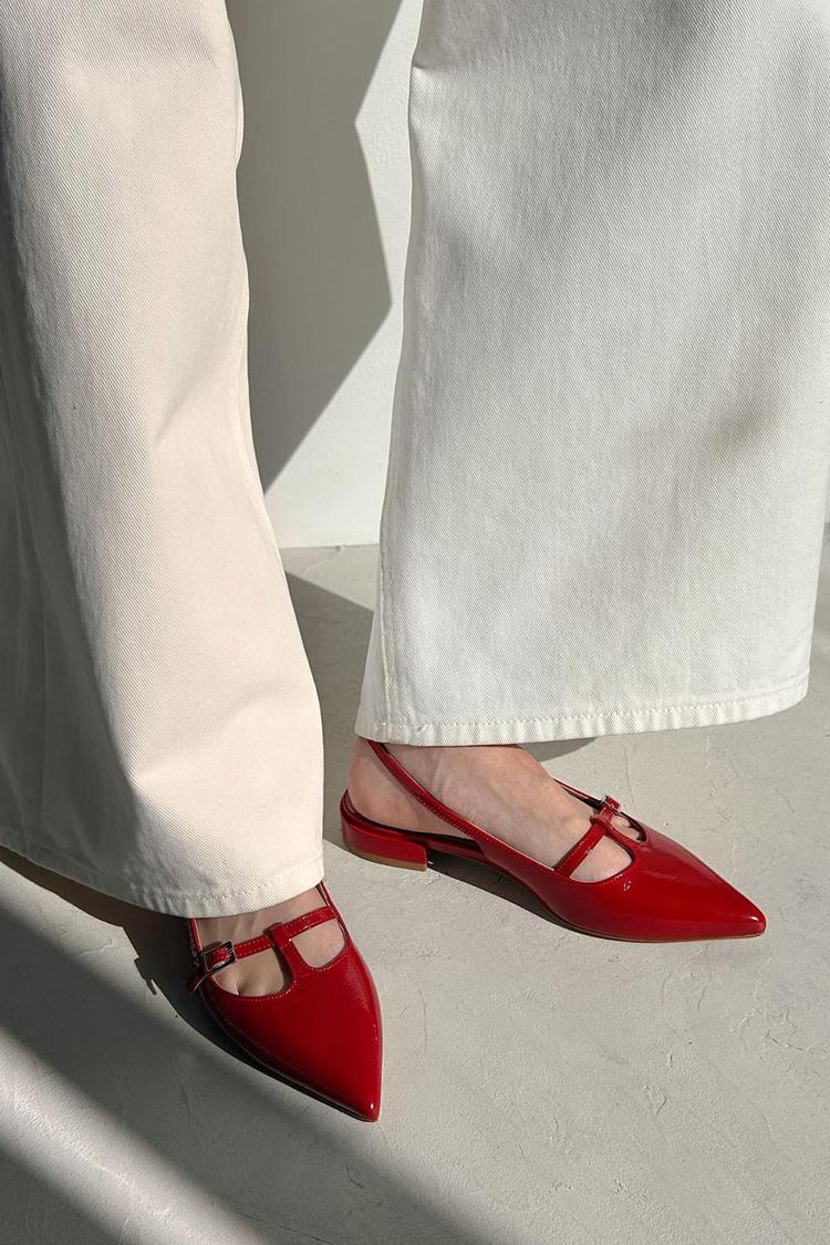 Sapatilhas Vermelhas de Bico Apontado com Tira Atrás de Cor Sólida [Pré-Encomenda]