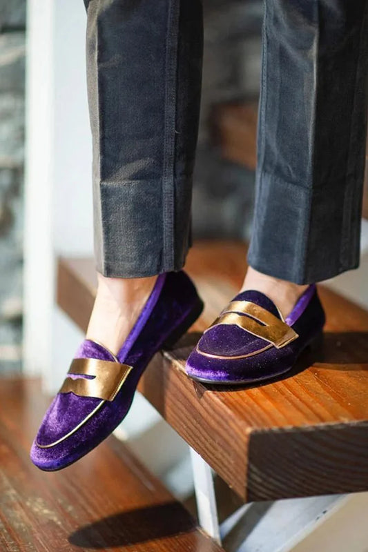 Mocassins roxos casuais de veludo com bico redondo patchwork [Pre Order]