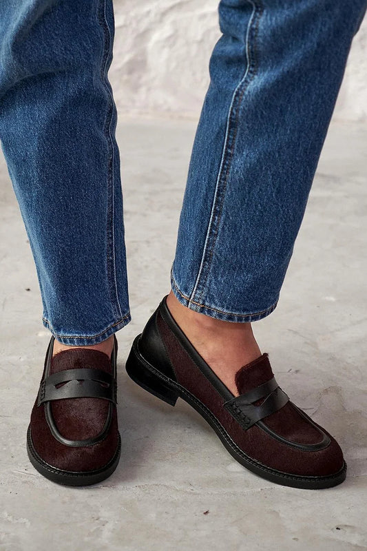 Mocassins marrons com detalhes em ponto patchwork e biqueira quadrada [Pre Order]