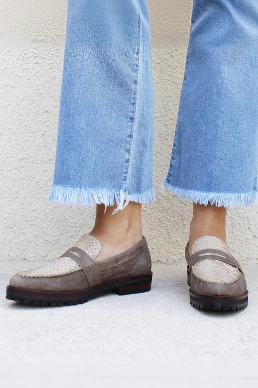 Mocassins Cinza Redondos em Padrão de Crocodilo com Combinação de Cores [Pré Encomenda]