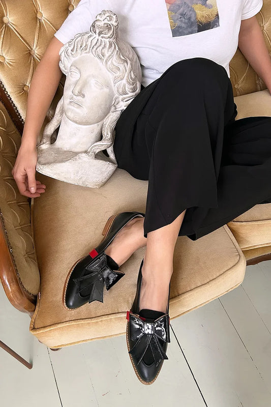 Mocassins Pretos Casuais de Bico Fino com Decoração [Pré Encomenda]