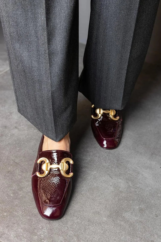 Mocassins Borgonha com Biqueira Quadrada e Fivela de Metal [Pré-Encomenda]