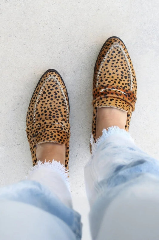 Mocassins castanhos de biqueira pontiaguda, baixos, acolchoados, com padrão de leopardo [Pré-encomenda]
