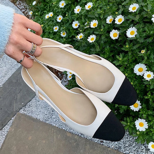 Lindo Sapatilha Bicolor com Ponta Apontada, Tira Atrás e Ponta às Risquinhas Pretas [Pré-Encomenda]