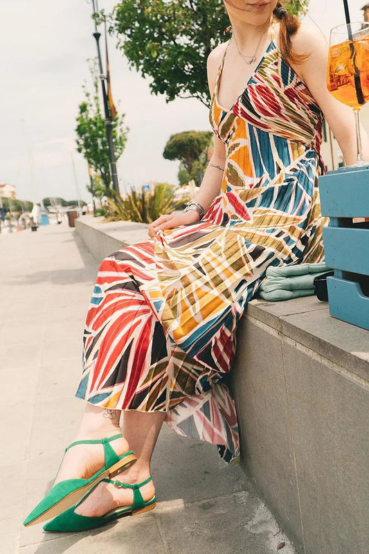 Sabrinas de biqueira sólida verde com fivela em T e bico pontiagudo [Pré-encomenda]