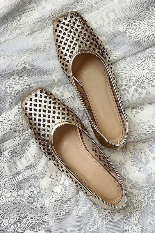 Sapatilhas champanhe vazadas com brilho metálico e bico redondo [Pre Order]