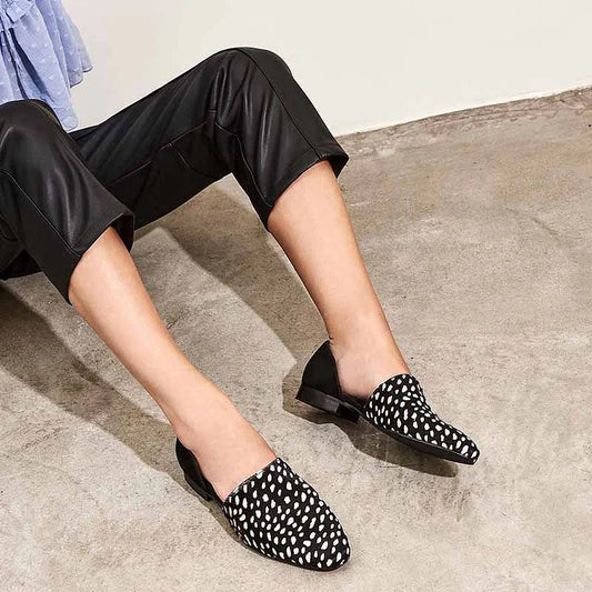 Sapatilhas Casuais Pretas com Estampa de Pontos Irregulares e Biqueira Redonda [Pré-Encomenda]