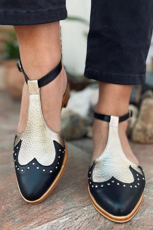 Sapatilhas Pretas de Biqueira Apontada com Tira de Fivela e Pormenor de Patchwork [Pré-Encomenda]