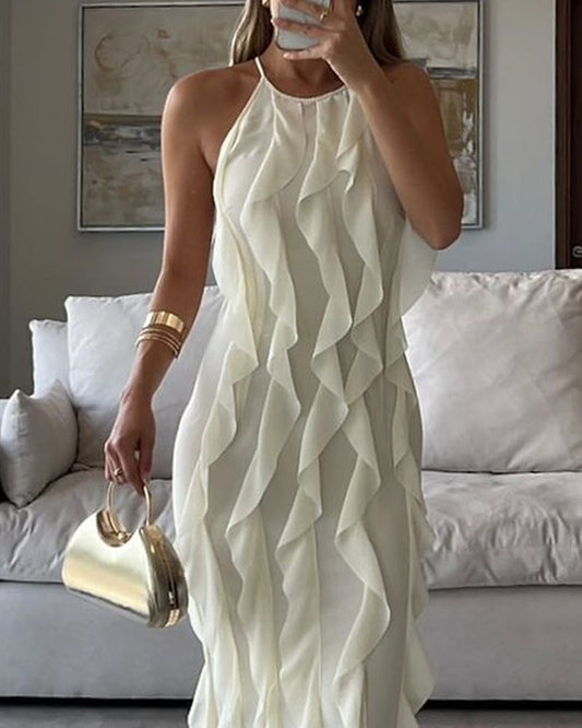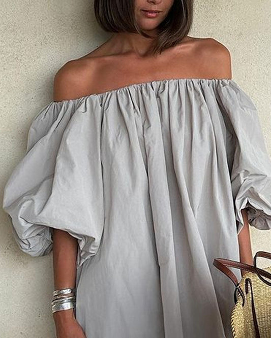 Vestido Elegante e Gracioso de Cor Sólida Sem Alças