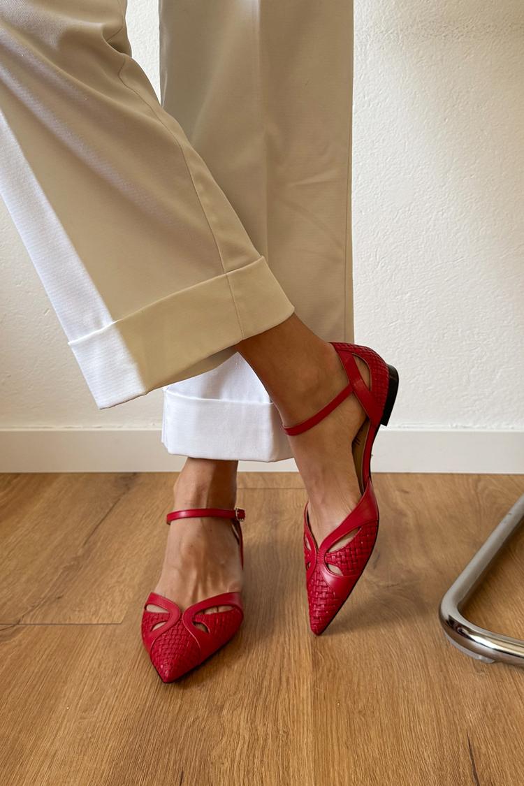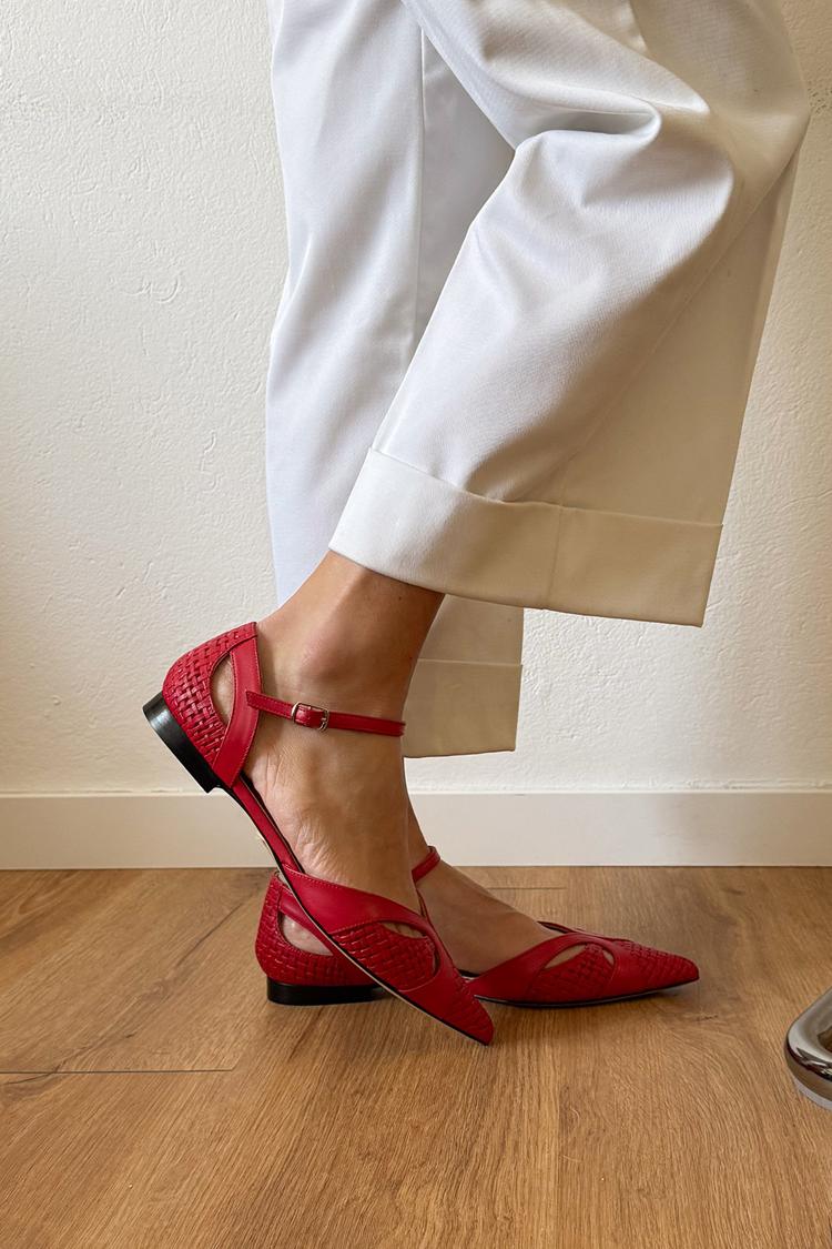 Sapatilhas Vermelhas com Biqueira Apontada e Fivela de Tira no Tornozelo Vazadas
